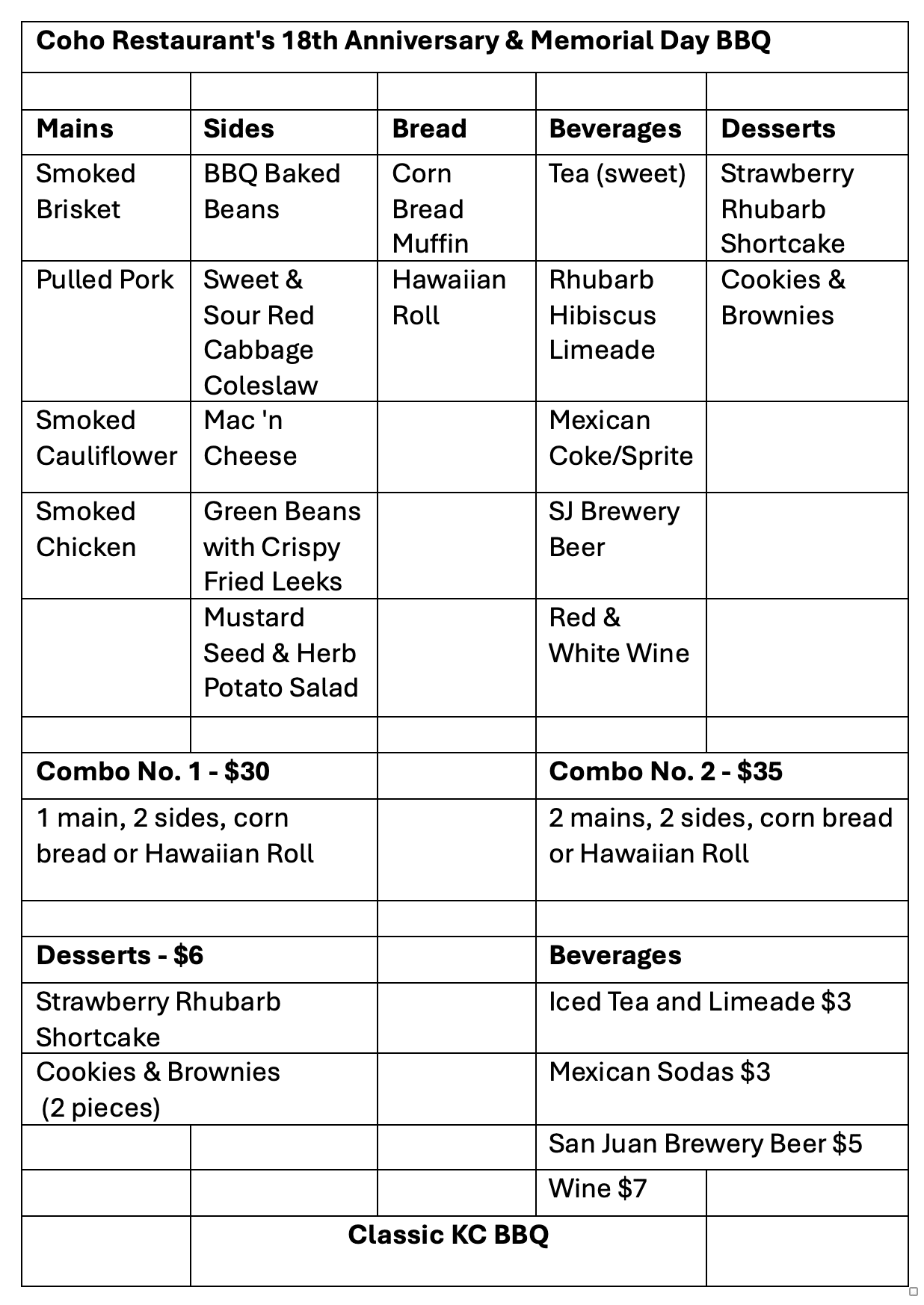 Celebrate the holiday weekend and Coho Restaurant’s anniversary. We’ll have live music! It’s going to be a smokin’ good time!